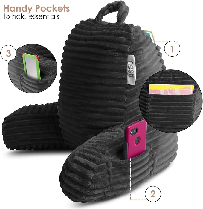 - Everyday Features That Just Make Sense - Designed with your routine in mind: 2 side pockets for your phone or remote, 1 large back pocket for books or tablets, and a carry handle to take your backrest pillow anywhere. Plus, the ultra-soft cover is removable and machine washable for stress-free upkeep.