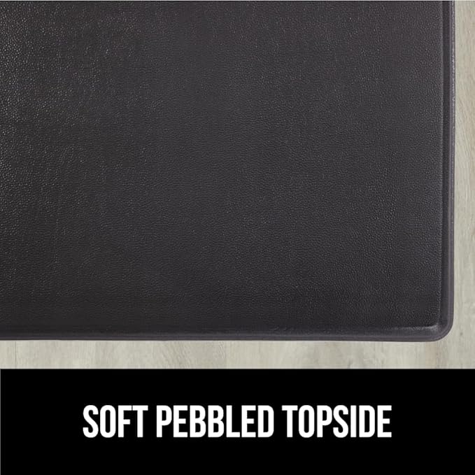- SOFT PEBBLED LEATHER-LIKE TOPSIDE: anti fatigue mat’s topside is constructed of a soft pebbled leather like material that adds extra comfort under bare feet or paws